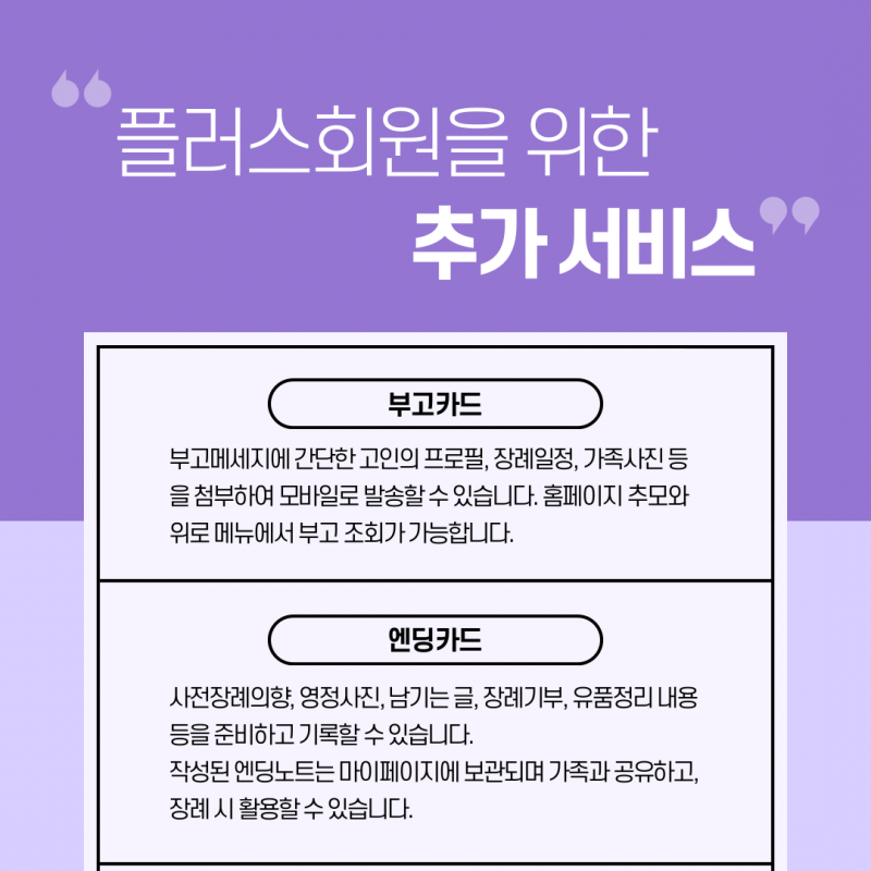 - 부고카드 : 부고메세지에 간단한 고인의 프로필, 장례일정,
