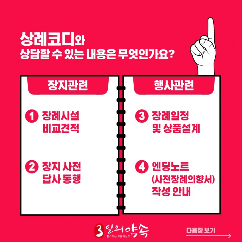 발생할 수 있어, 사전 상례 코디 상담을 통해