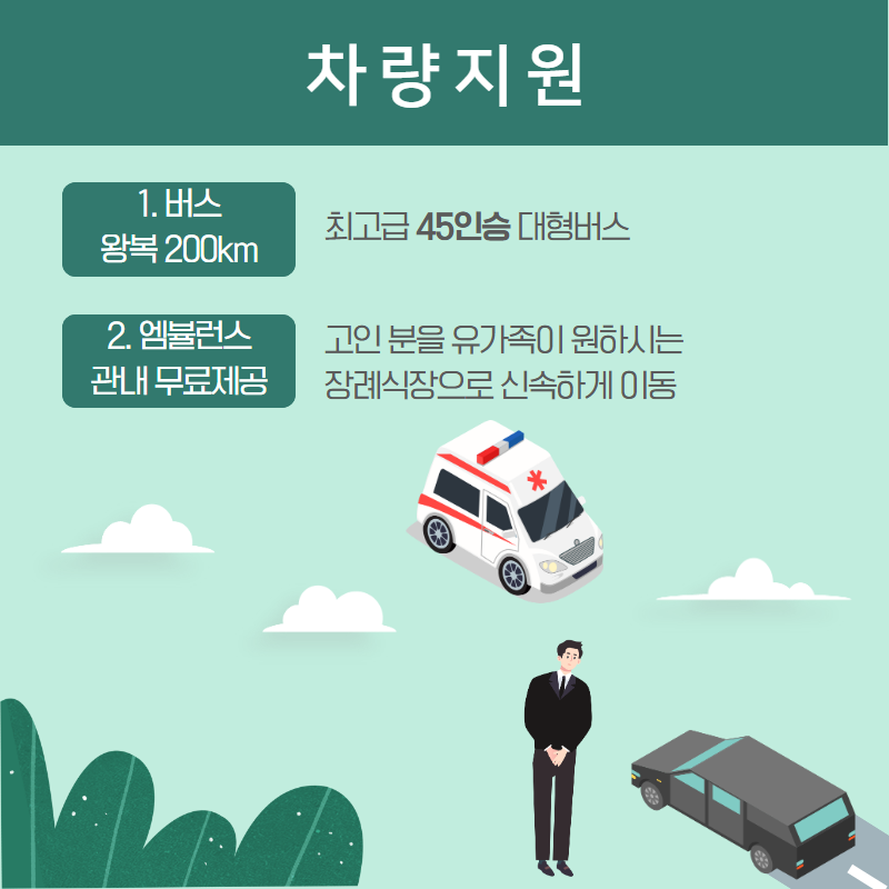 - 엠뷸런스(관내 무료제공): 고인 분을 유가족이