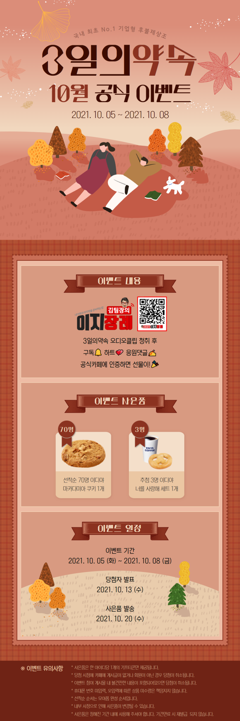 3일의약속 10월 공식이벤트 [오디오클립 구독+하트+응원댓글 인증 이벤트]