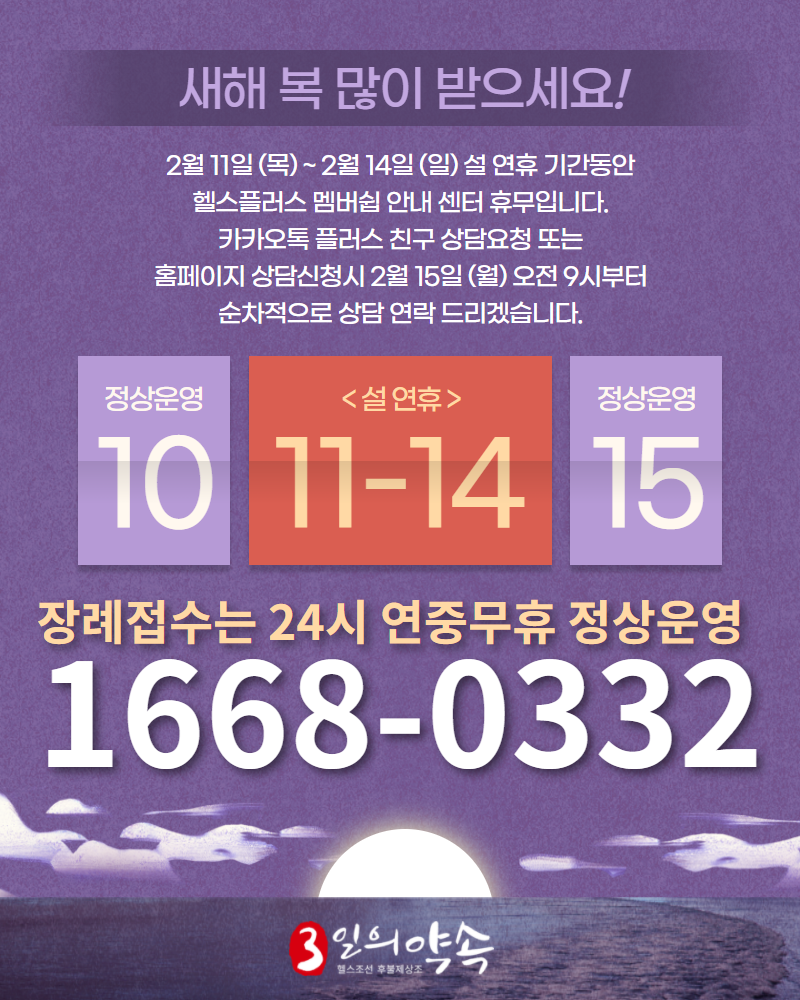 2월 11일 (목) ~ 2월 14일 (일) 설 연휴 기간동안