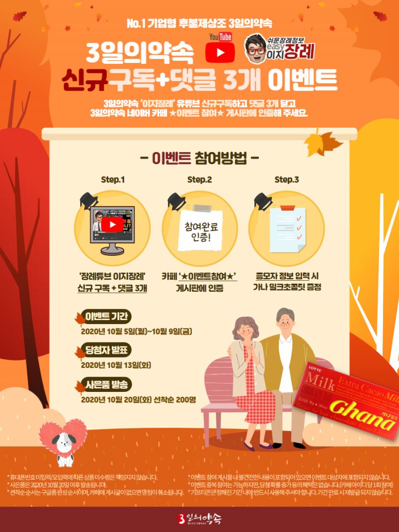 3일의약속 네이버 공식 카페 이벤트 [유튜브 신규 구독 + 댓글 3개 인증 이벤트] 참여하시고