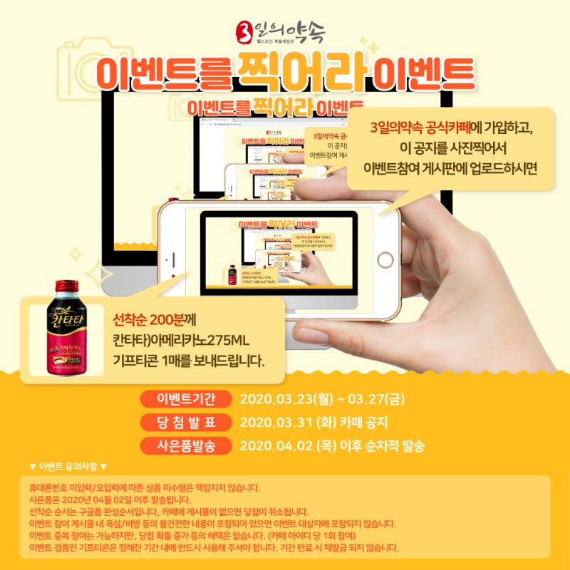 3일의약속 네이버 공식 카페 이벤트를 찍어라 이벤트