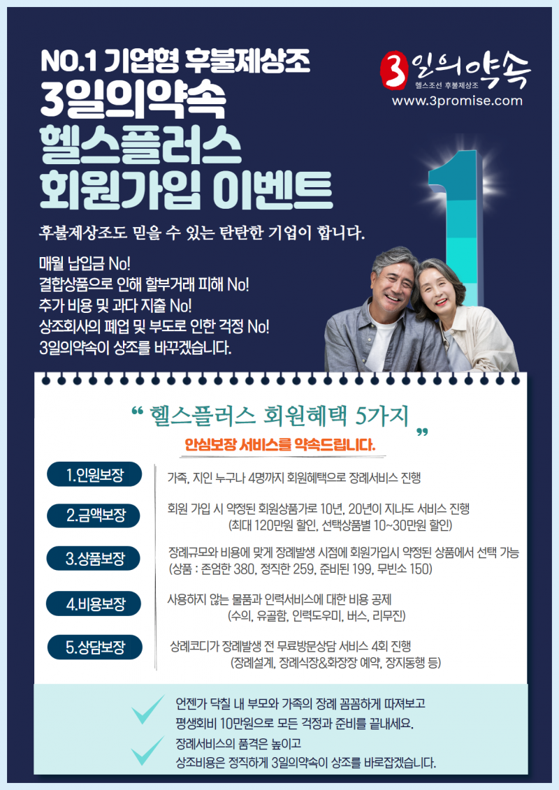 No.1 기업형 후불제상조 3일의약속 헬스플러스 회원가입 이벤트