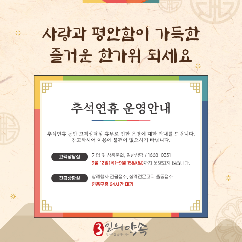 추석기간 운영안내
