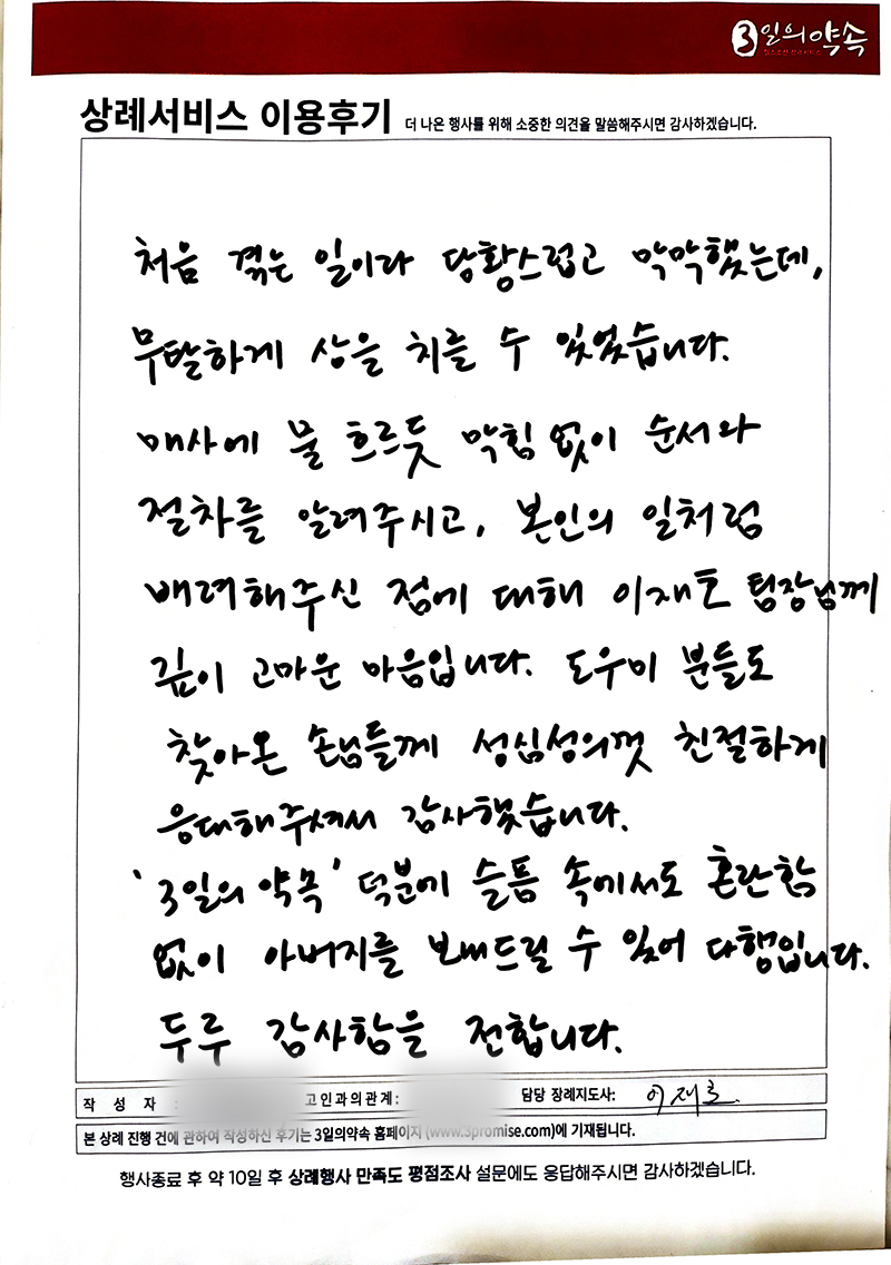 '3일의약속' 덕분에 슬픔 속에서도 혼란함 없이 아버지를 보내드릴 수 있어 다행입니다.