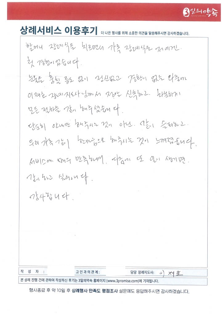 이재호 장례지도사님께서 정말 신속하고 차분하게