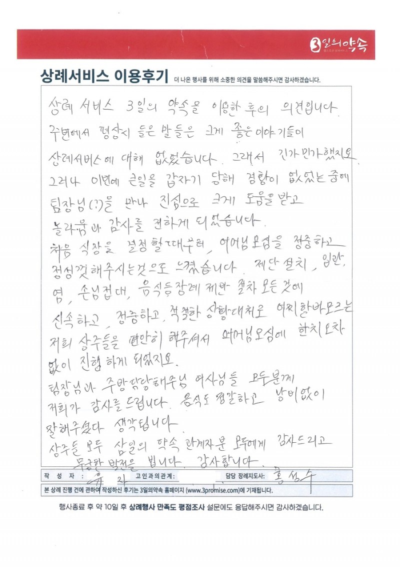 상례서비스 3일의약속을 이용한 후의 의견입니다.