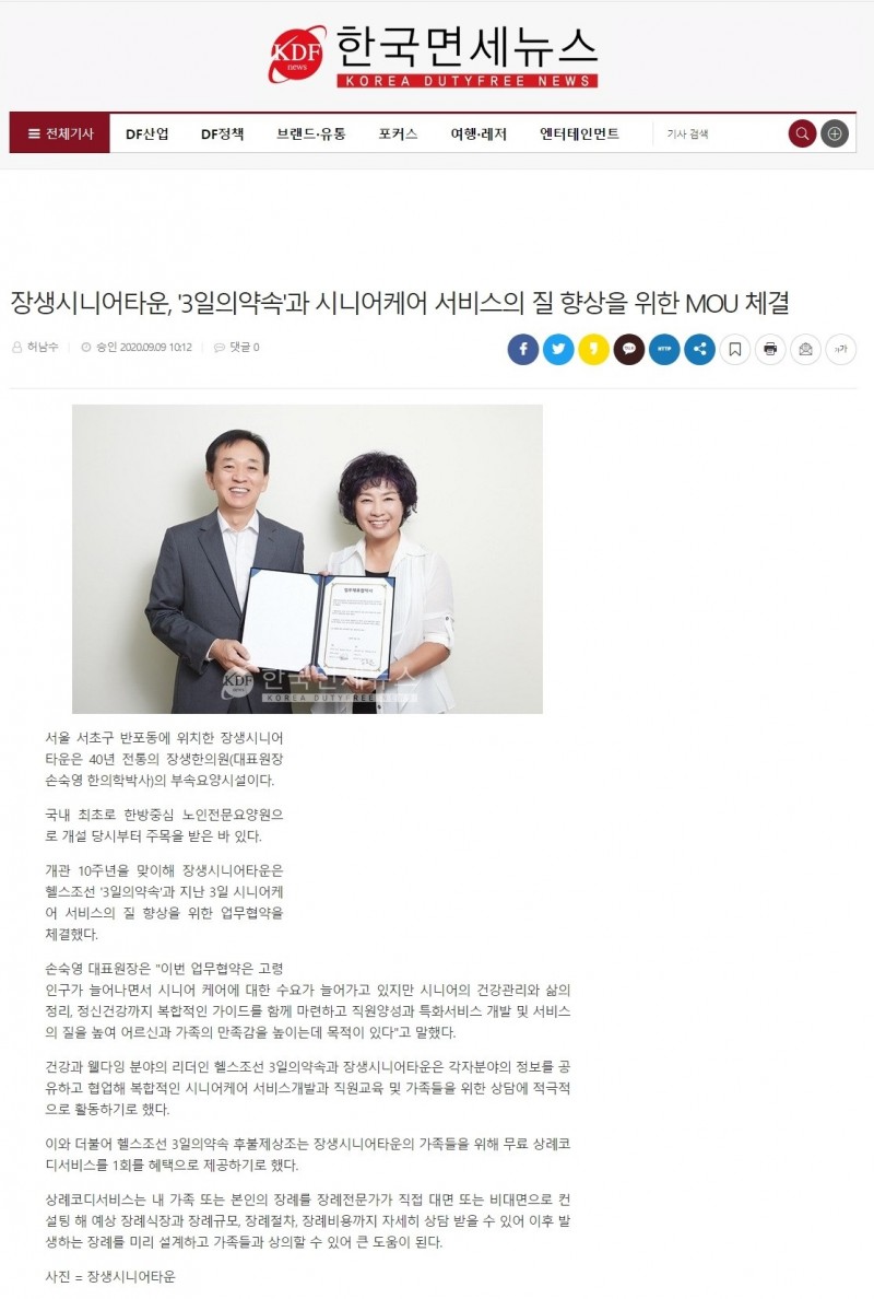 장생시니어타운, '3일의약속'과 시니어케어 서비스의 질 향상을 위한 MOU 체결