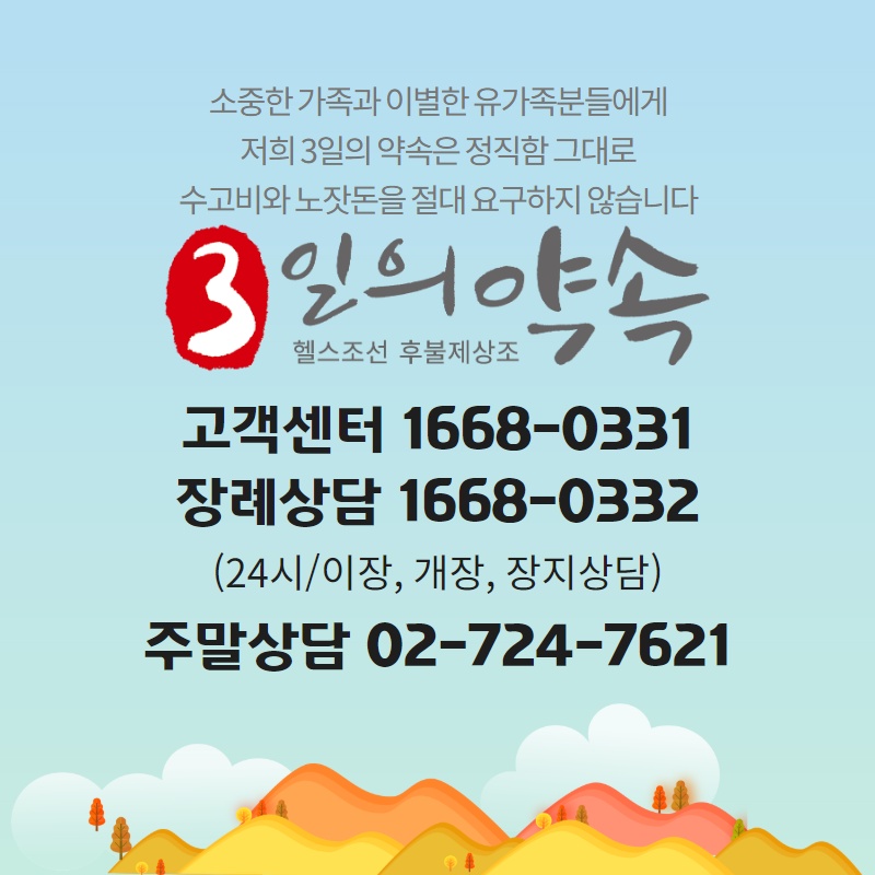 장례상담문의 1668-0331평일 9:00 ~ 18:00(점심 12시~13시)