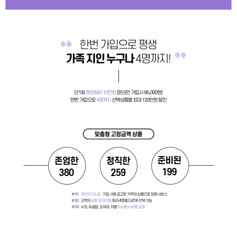- 장례상품 할인 : 장례상품 최대 120만원 할인혜택