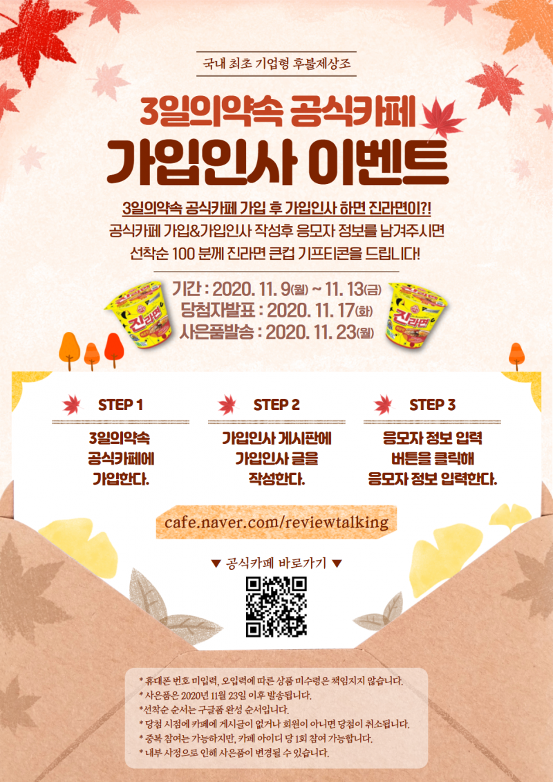 3일의약속 공식카페 가입인사 이벤트