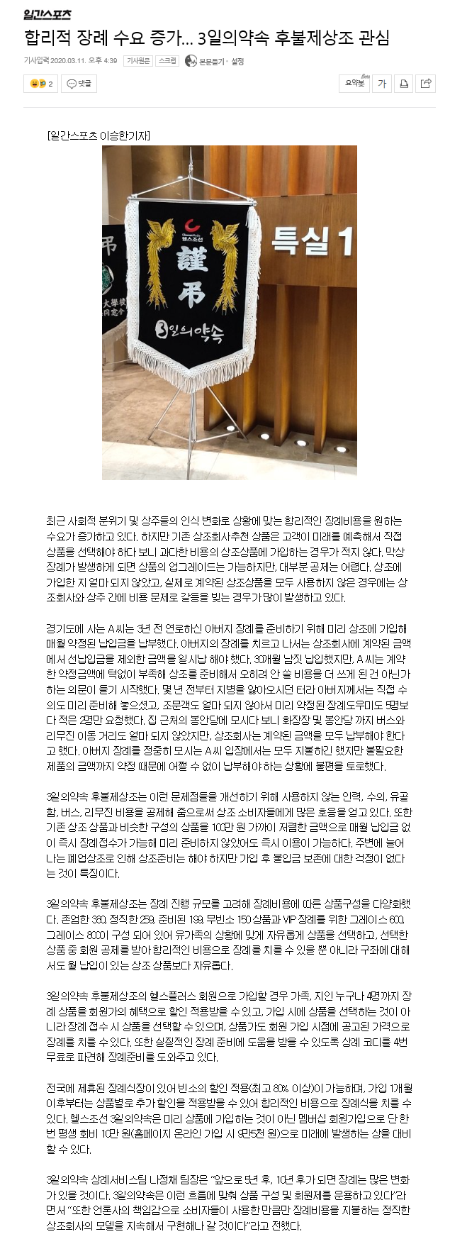 “또한 언론사의 책임감으로 소비자들이 사용한 만큼만 장례비용을 지불하는